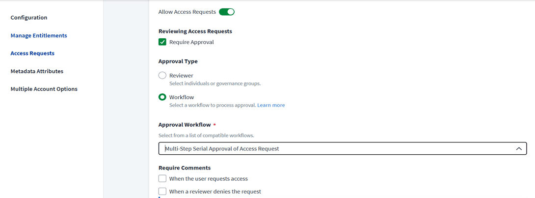 Adaptive Approvals in SailPoint allow us to create approval processes for both access requests and task-based actions. It’s a workflow-based approval system. Admins use the Approval Policy and Generic Approval Policy Workflows actions to define the review process and assign reviewers. Identities, Managers, Access Item Owners, or Governance Groups are the reviewer type for this process. Admin can add reminders if the review is not completed, gets timeout if it is not completed in a specific time.
